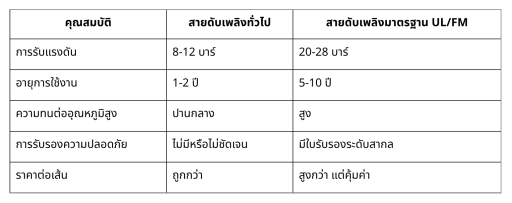 สายดับเพลิงทั่วไป VS สายที่ผ่าน UL/FM