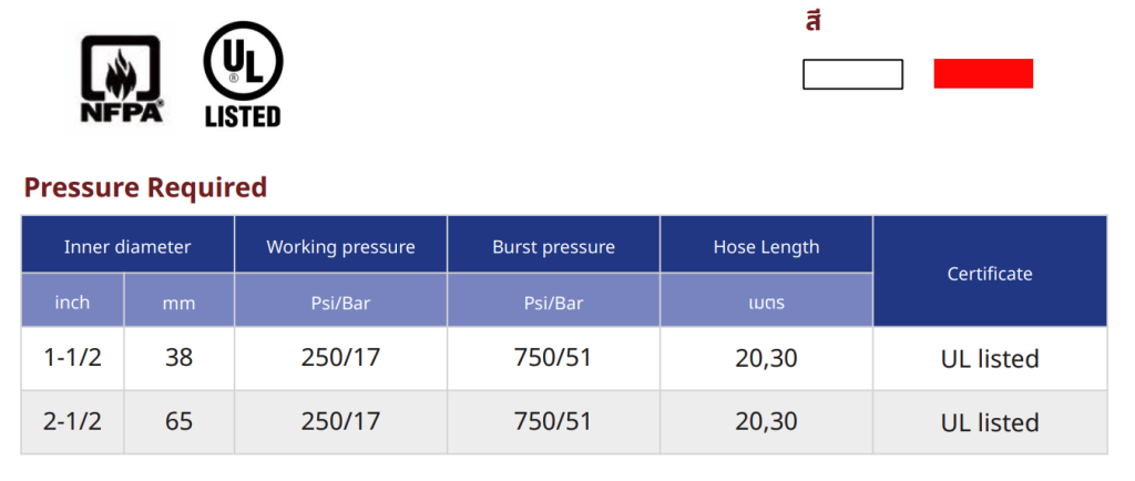 - สายดับเพลิง TPU ได้รับการรับรองมาตรฐาน UL และผลิต ขนาดตามความต้องการตามมาตรฐาน NFPA1961 และขั้นตอนการผลิตตามมาตรฐาน ISO-9001:2000